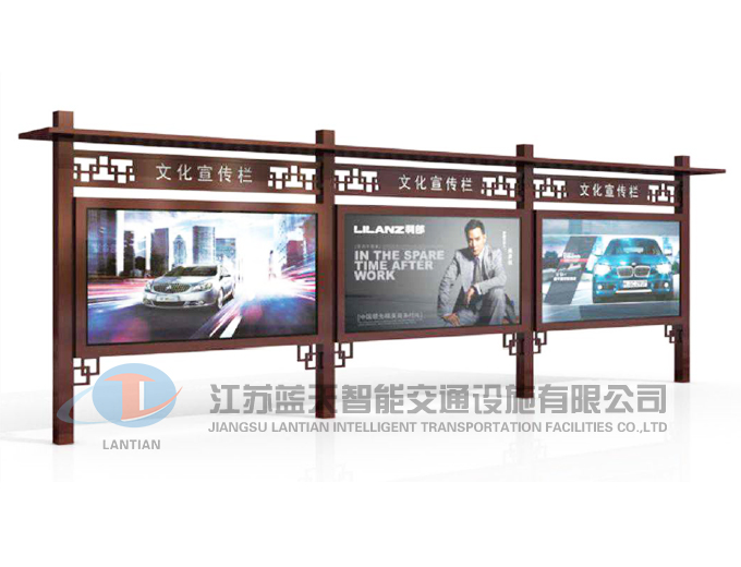 是一家生產宣傳欄,候車亭,公交站臺,閱報欄,指路牌,廣告垃圾箱,滾動換畫燈箱等系列產品廠家!產品多達上百種,亦可根據客戶的需求加工制作各種型號、規(guī)格的產品。目前已經成功的向市場推出裝備有太陽能的各類產品,緊跟國家倡導“節(jié)能低碳”的環(huán)保政策。